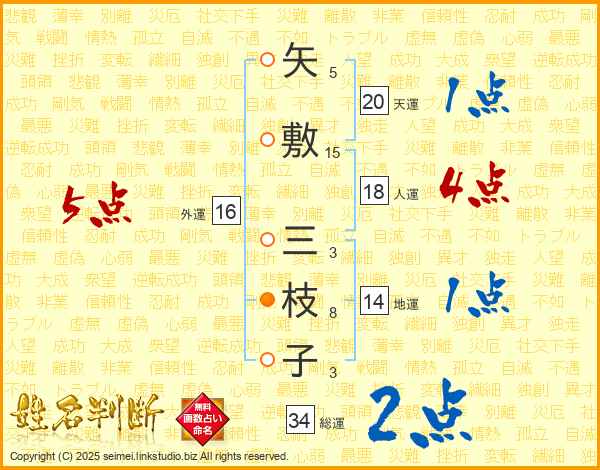 矢敷三枝子さんの総運は34画の2点!