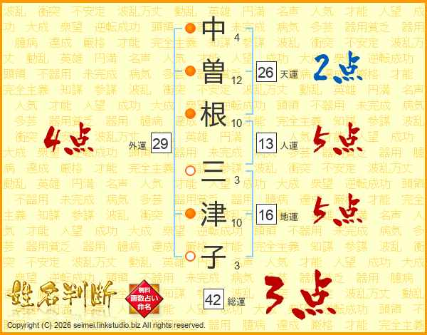 中曽根三津子さんの総運は42画の3点!