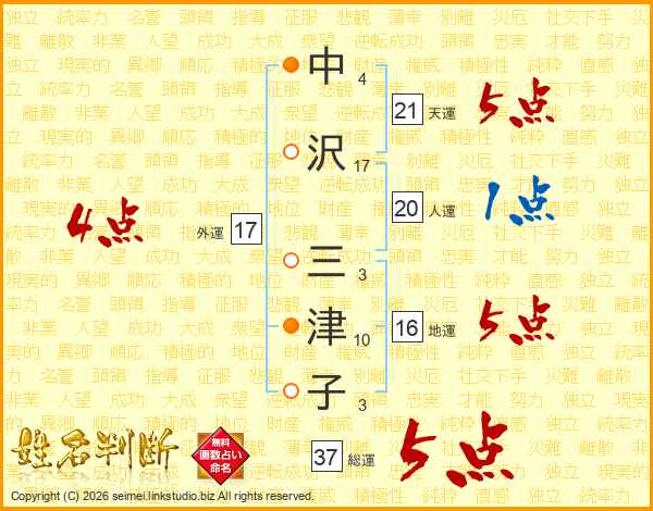 中沢三津子さんの総運は37画の5点!