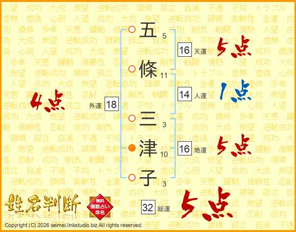 五條三津子さんの総運は32画の5点!