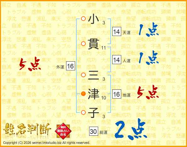 小貫三津子さんの天運は14画の1点!