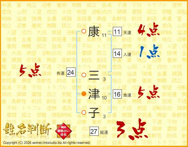 康三津子さんの外運は24画の5点!
