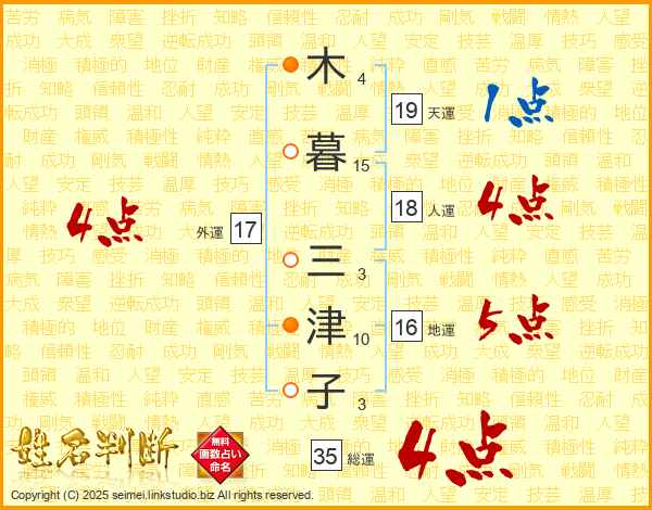 木暮三津子さんの総運は35画の4点!