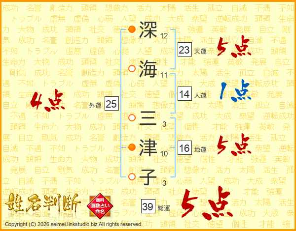 深(12画)海(11画) 三(3画)津(10画)子(3画)