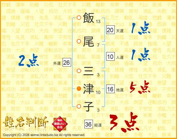 飯尾三津子さんの天運は20画の1点!