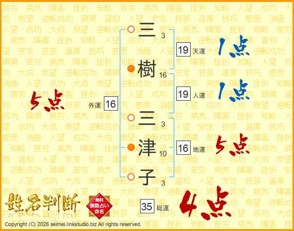 三(3画)樹(16画) 三(3画)津(10画)子(3画)