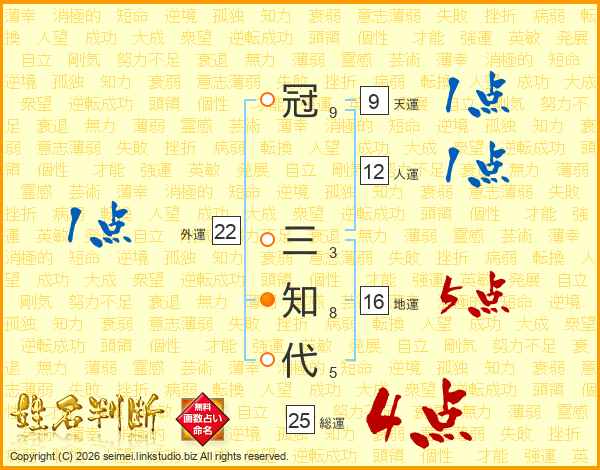 冠三知代さんの総運は25画の4点!
