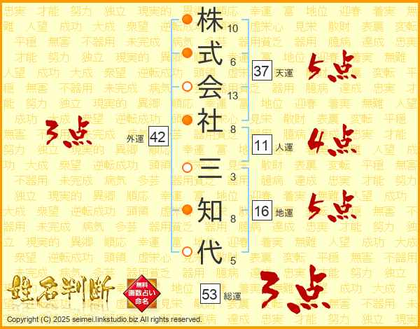 株(10画)式(6画)会(13画)社(8画) 三(3画)知(8画)代(5画)