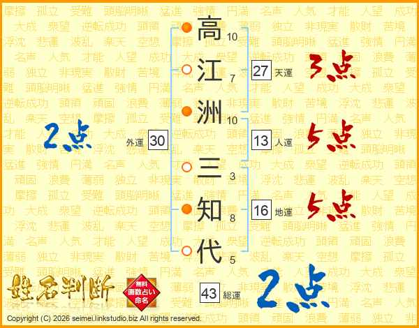 高江洲三知代さんの総運は43画の2点!
