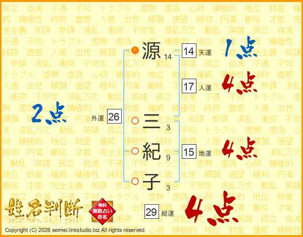源三紀子さんの総運は29画の4点!