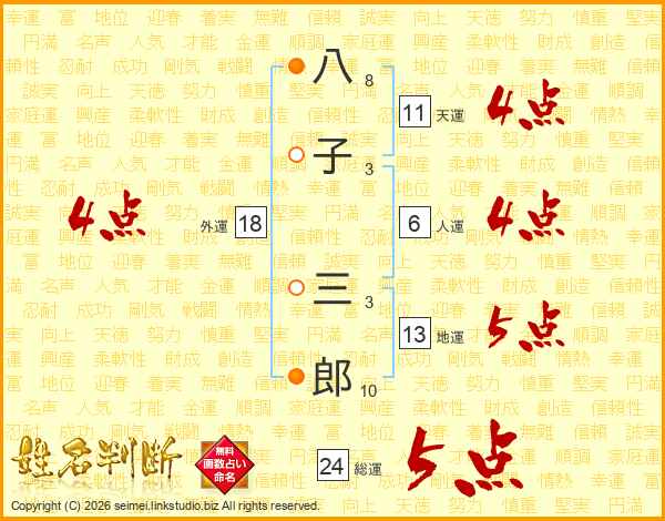 八子三郎さんの天運は11画の4点!
