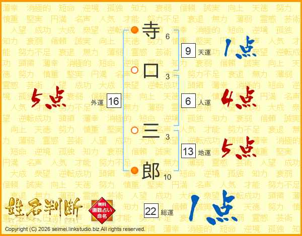 寺口三郎さんの外運は16画の5点!