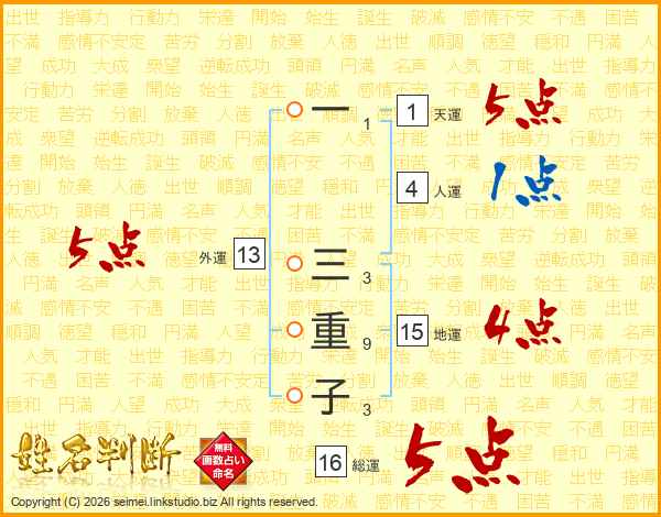 一三重子さんの総運は16画の5点!