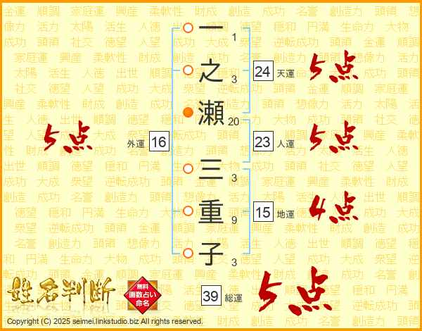 一之瀬三重子さんの外運は16画の5点!