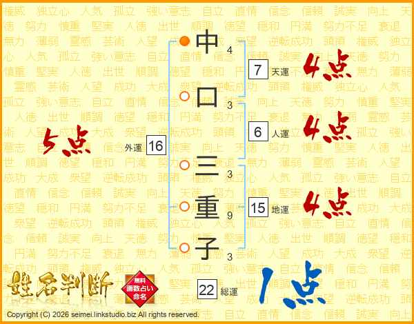 中(4画)口(3画) 三(3画)重(9画)子(3画)