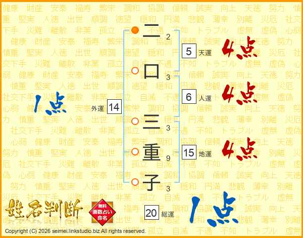 二口三重子さんの外運は14画の1点!