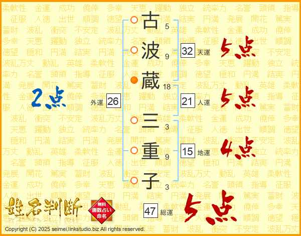 古波蔵三重子さんの総運は47画の5点!