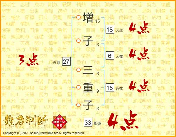 増(15画)子(3画) 三(3画)重(9画)子(3画)