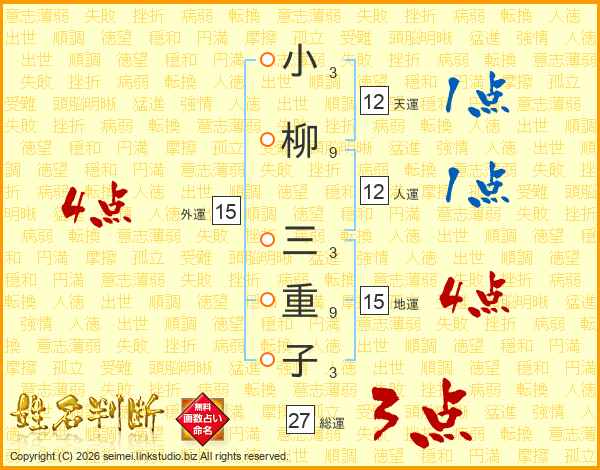 小柳三重子さんの総運は27画の3点!