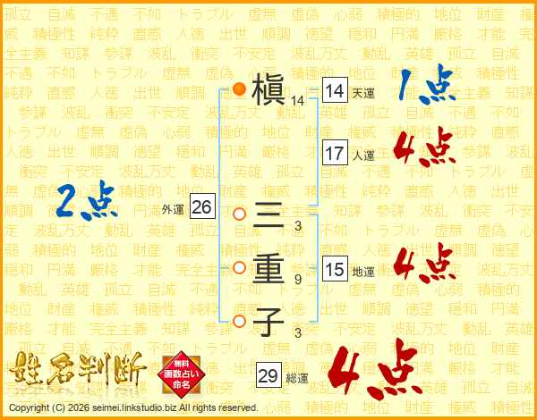 槇三重子さんの総運は29画の4点!