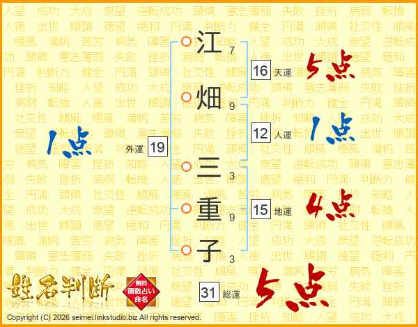 江畑三重子さんの総運は31画の5点!