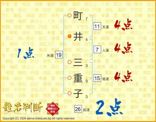 町井三重子さんの総運は26画の2点!