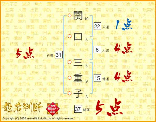 関口三重子さんの総運は37画の5点!