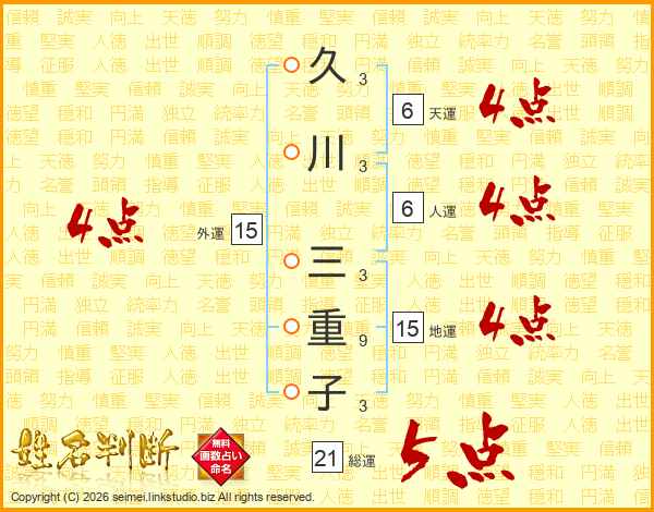 久川三重子さんの外運は15画の4点!