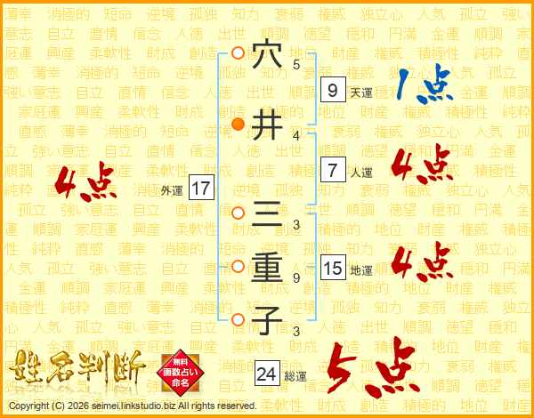 穴井三重子さんの外運は17画の4点!