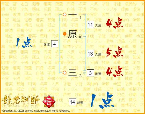 一原三さんの総運は14画の1点!