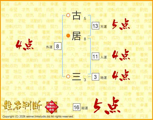 古居三さんの天運は13画の5点!
