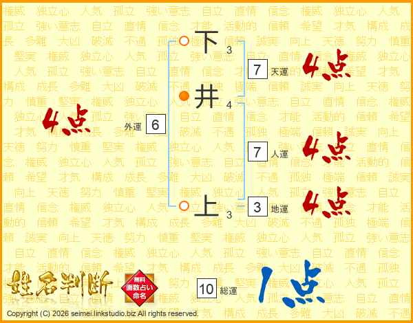 下井上さんの天運は7画の4点!