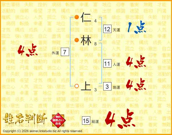 仁林上さんの総運は15画の4点!