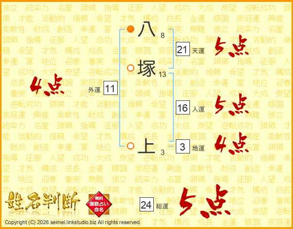 八塚上さんの総運は24画の5点!