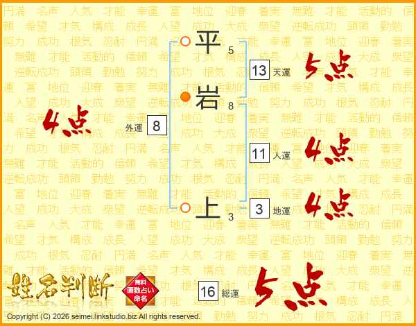 平岩上さんの天運は13画の5点!