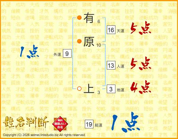 有原上さんの天運は16画の5点!