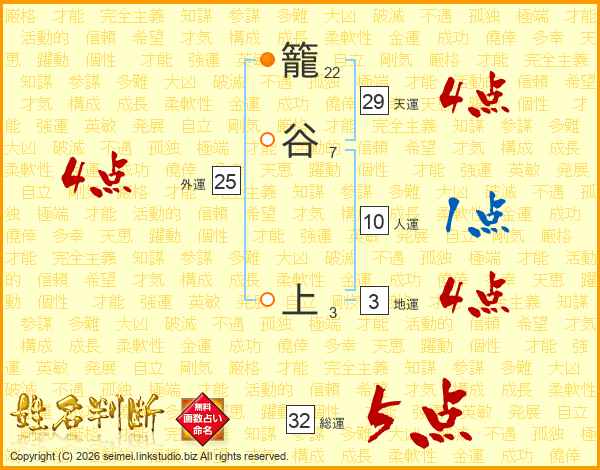 籠谷上さんの総運は32画の5点!