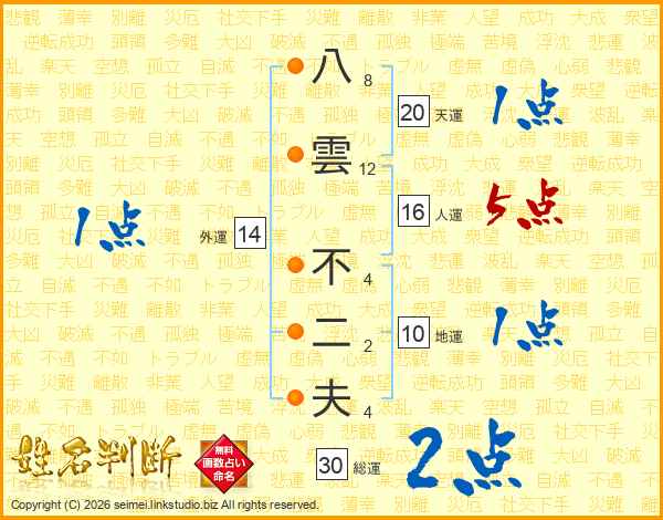 八雲不二夫さんの総運は30画の2点!