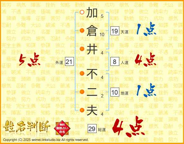 加(5画)倉(10画)井(4画) 不(4画)二(2画)夫(4画)