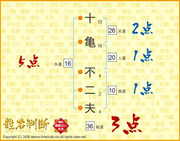 十(10画)亀(16画) 不(4画)二(2画)夫(4画)