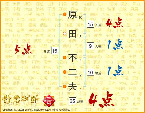 原(10画)田(5画) 不(4画)二(2画)夫(4画)