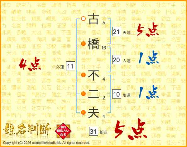古橋不二夫さんの総運は31画の5点!