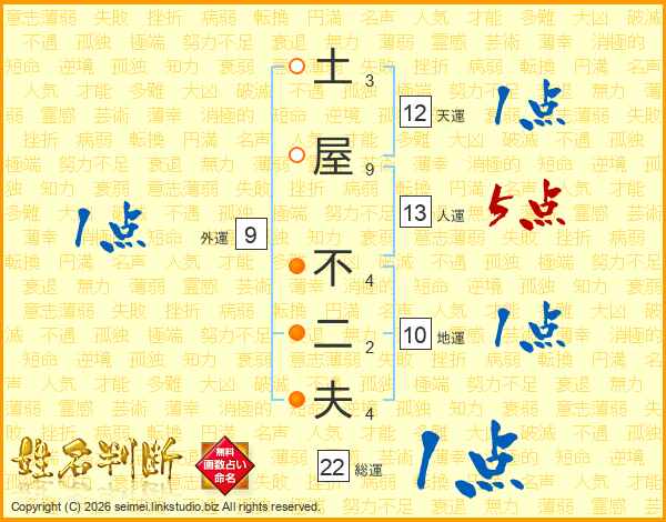 土屋不二夫さんの総運は22画の1点!