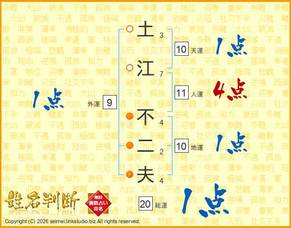 土江不二夫さんの人運は11画の4点!