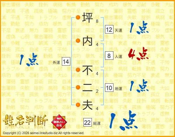 坪(8画)内(4画) 不(4画)二(2画)夫(4画)