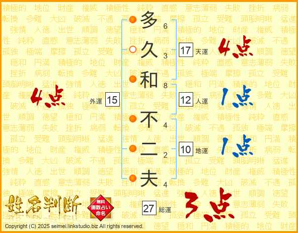 多(6画)久(3画)和(8画) 不(4画)二(2画)夫(4画)