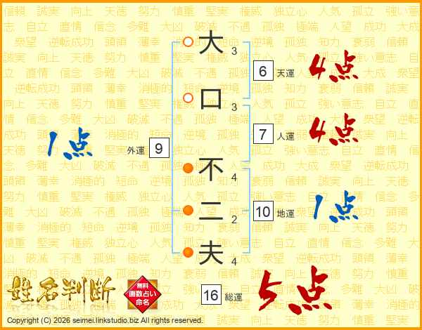 大口不二夫さんの総運は16画の5点!