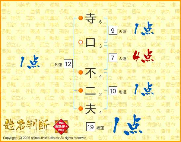 寺(6画)口(3画) 不(4画)二(2画)夫(4画)