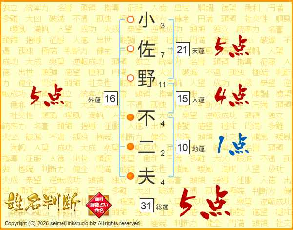小佐野不二夫さんの総運は31画の5点!