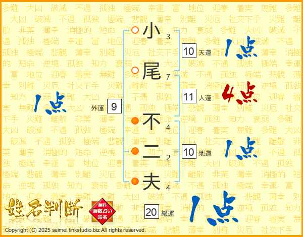 小尾不二夫さんの総運は20画の1点!